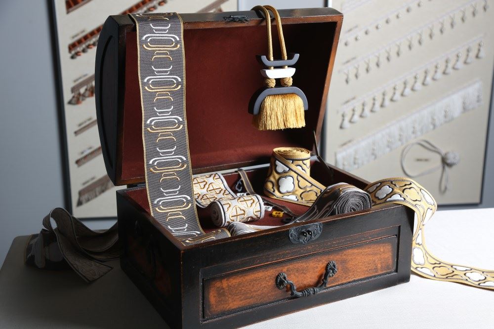 這款帶子,以貼布繡工藝,讓梅花呈現(xiàn)錯落的立體感;