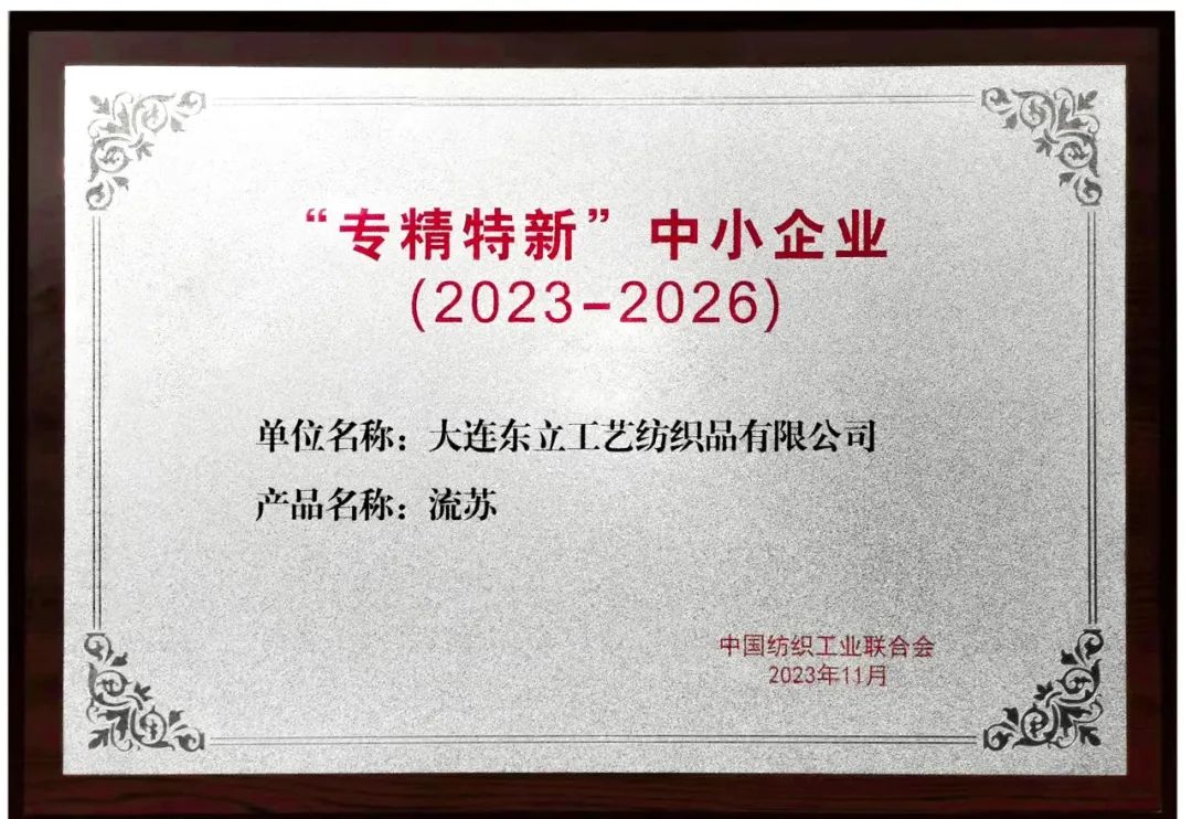 “2023年度十大類紡織創(chuàng)新產(chǎn)品”和2023-2026“專精特新”中小企業(yè)榮譽稱號。
