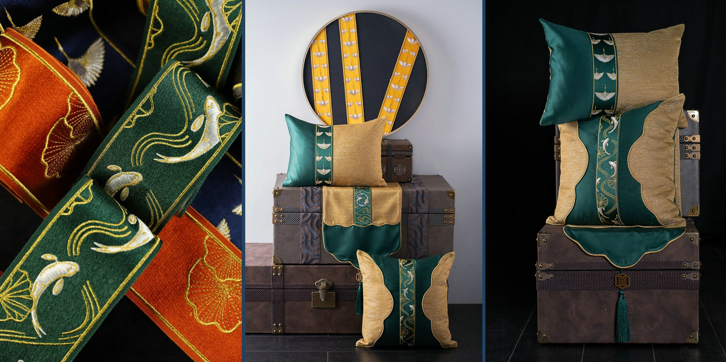 鎏金閣系列產品將傳統(tǒng)元素與摩登時尚的新設計相融合,以緞紋底帶呈現(xiàn)華貴光感,展示新中式的時尚與富麗堂皇。